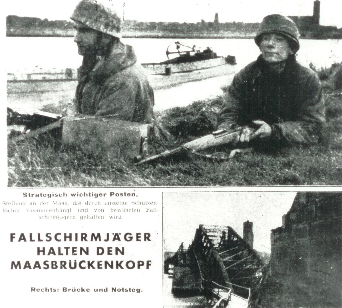 trokken de Fallschirmjäger van Bataillon Paul via de spoorbrug van Buggenum richting het bruggenhoofd Hatenboer. Leutnant Glawatz beschreef de tocht: ‘We konden nog net over de brug bij Buggenum ontsnappen. Vlak voordat deze de lucht invloog. In Leeuwen hadden we vervolgens een dag rust. Uitgehongerd aten we appels die nog in de bomen hingen. De volgende dag moesten we aantreden in Leeuwen en liepen in de richting van de Maasbrug bij Roermond. We klauterden over een gammel houten noodbruggetje langs de vernielde Maasbrug. Mijn commandopost was ingericht in een van de huizen bij de brug. We hoorden dezelfde dag nog het juichen van de burgers in Horn toen de Britten het dorp binnentrokken. De lichamelijke en geestelijke toestand van de Fallschirmjäger was ronduit slecht. Bijna iedereen was uitgeput door slaapgebrek. Velen hadden maagklachten, buikloop en koorts door het slechte eten en het slechte weer. Door de soldaten in de half ondergelopen stellingen te bezoeken probeerde ik het moreel te verhogen.’