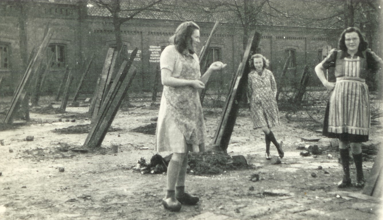 Versperring op de Minderbroederssingel met Toos, Fie en Mia van Dinter (Eric Munnicks)